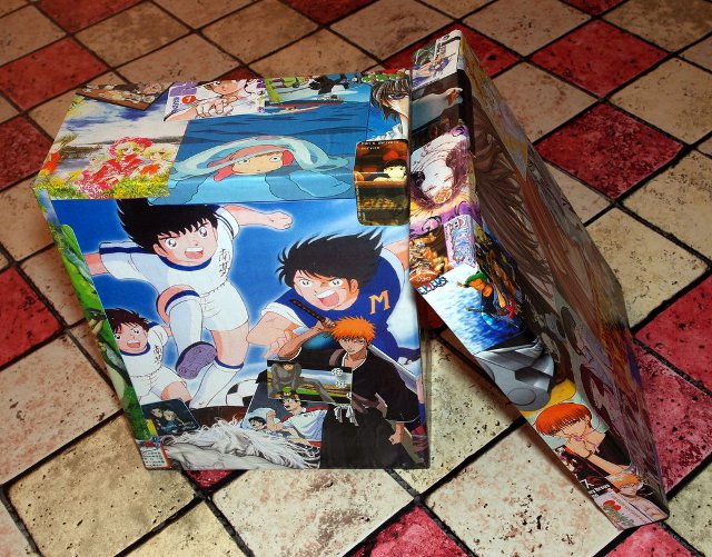 Ho dovuto ritagliare altre riviste per finire di ricoprire la scatola; avevo già dei ritagli pronti, ma le dimensioni che mi servivano erano terminate...